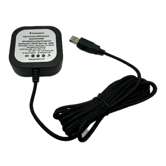 GeoAstra RTU608BT Industrial-Grade USB/Bluetooth RTK GNSS Receiver (ZED-F9P Multi-Band RTK, 30 cm Standalone Accuracy, up to 1.4 cm with RTK, Nylon Braided USB Cable, IP67 Waterproof, Operating Temperature: -40℃ to +85℃)