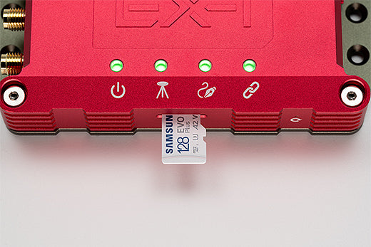 - Configure one EX-1 as the base station and another as the rover. Simply connect a GNSS antenna and insert a storage card.